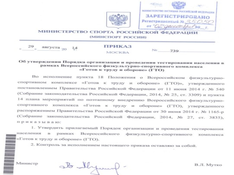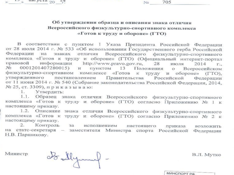 прошедшим испытания по сдаче нормативов и требований Комплекса, является соответствующий приказ (распоряжение) руководителя учебного заведения.