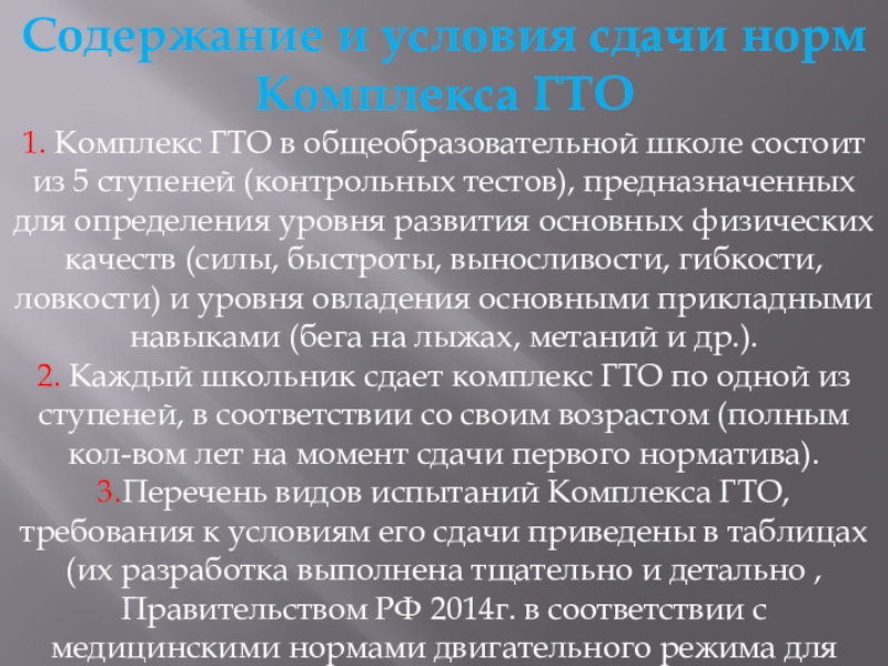 Слайд 34Содержание и условия сдачи норм Комплекса ГТО