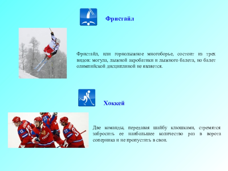 Две команды, передавая шайбу клюшками, стремятся забросить ее наибольшее количество раз в ворота соперника и не пропустить в свои.