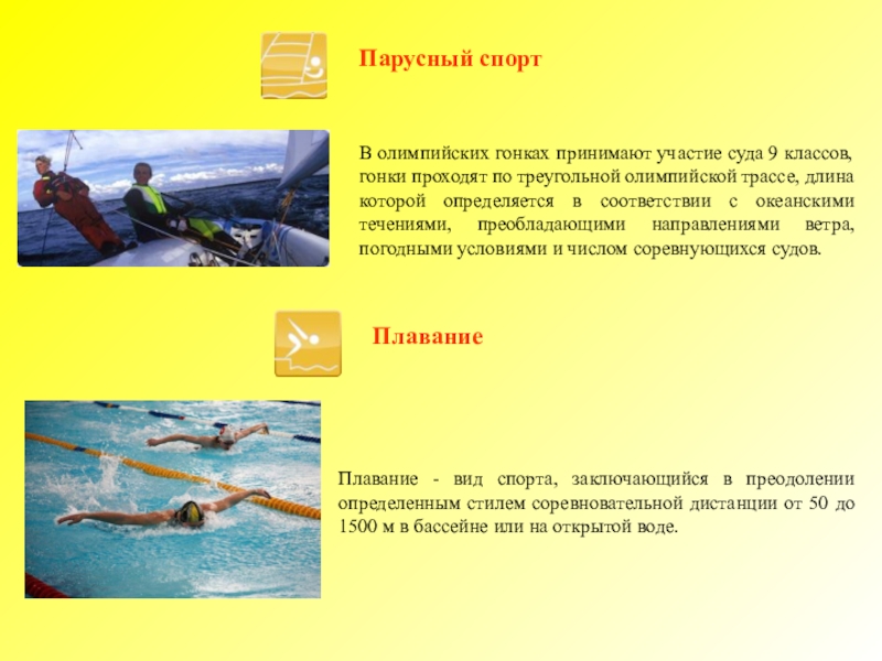 Плавание - вид спорта, заключающийся в преодолении определенным стилем соревновательной дистанции от 50 до 1500 м в бассейне или на открытой воде.