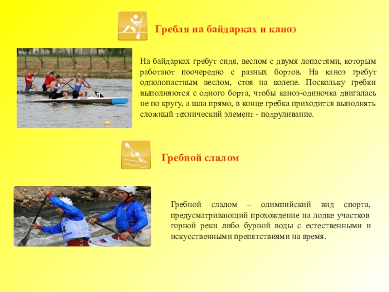 Гребной слалом – олимпийский вид спорта, предусматривающий прохождение на лодке участков горной реки либо бурной воды с естественными и искусственными препятствиями на время.