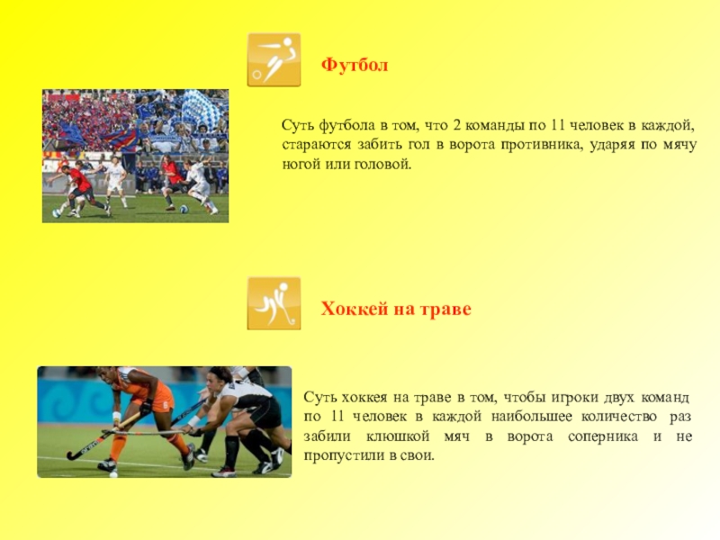 Суть хоккея на траве в том, чтобы игроки двух команд по 11 человек в каждой наибольшее количество раз забили клюшкой мяч в ворота соперника и не пропустили в свои.