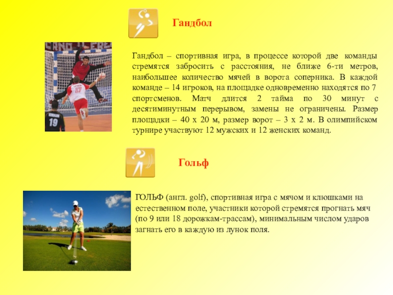 ГОЛЬФ (англ. golf), спортивная игра с мячом и клюшками на естественном поле, участники которой стремятся прогнать мяч (по 9 или 18 дорожкам-трассам), минимальным числом ударов загнать его в каждую из лунок поля.