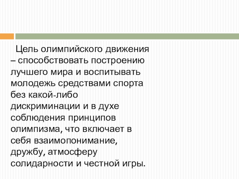 Слайд 9 "Цель олимпийского движении, способствовать построению лучшего мира посредством воспитания