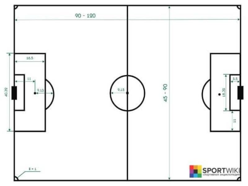 Стандартное поле для большого футбола представляет собой прямоугольную площадку, в которой линии ворот (лицевые линии) обязательно короче боковых линий. Далее мы рассмотрим параметры футбольного поля.