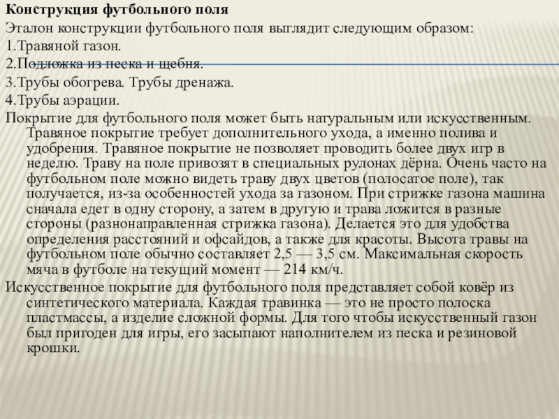 Эталон конструкции футбольного поля выглядит следующим образом:
