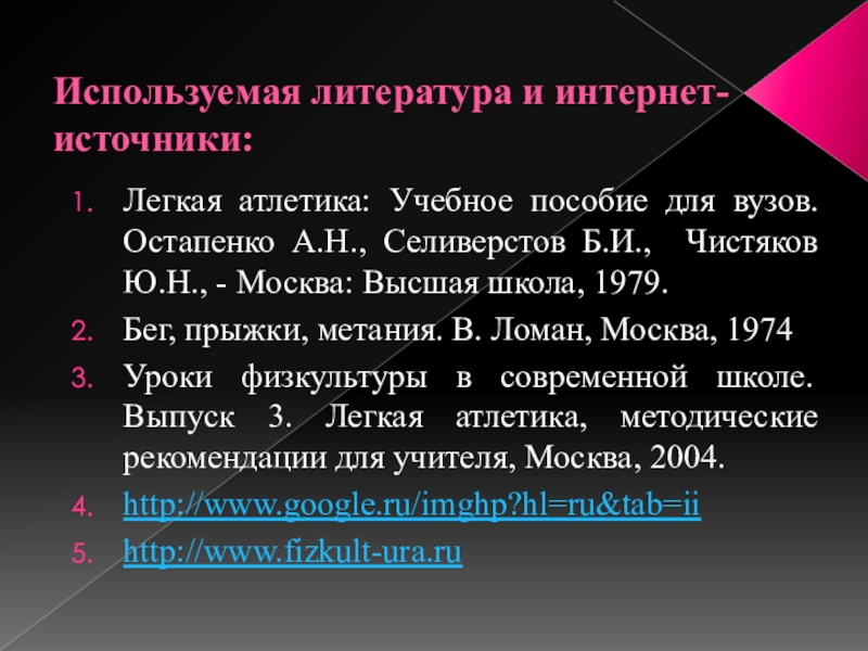 Уроки физкультуры в современной школе. Выпуск 3. Легкая атлетика, методические рекомендации для учителя, Москва, 2004.