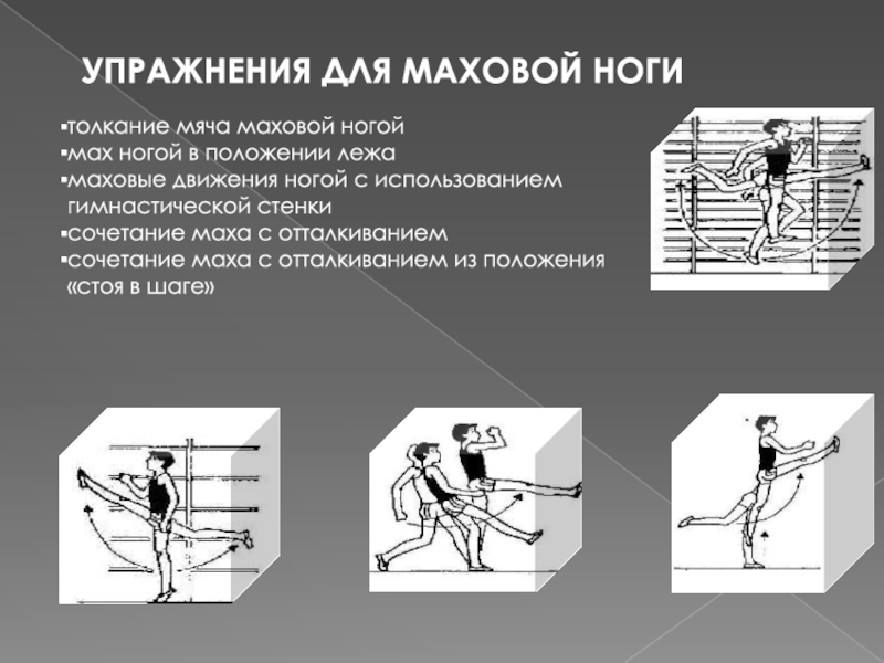 Слайд 27УПРАЖНЕНИЯ ДЛЯ МАХОВОЙ НОГИ