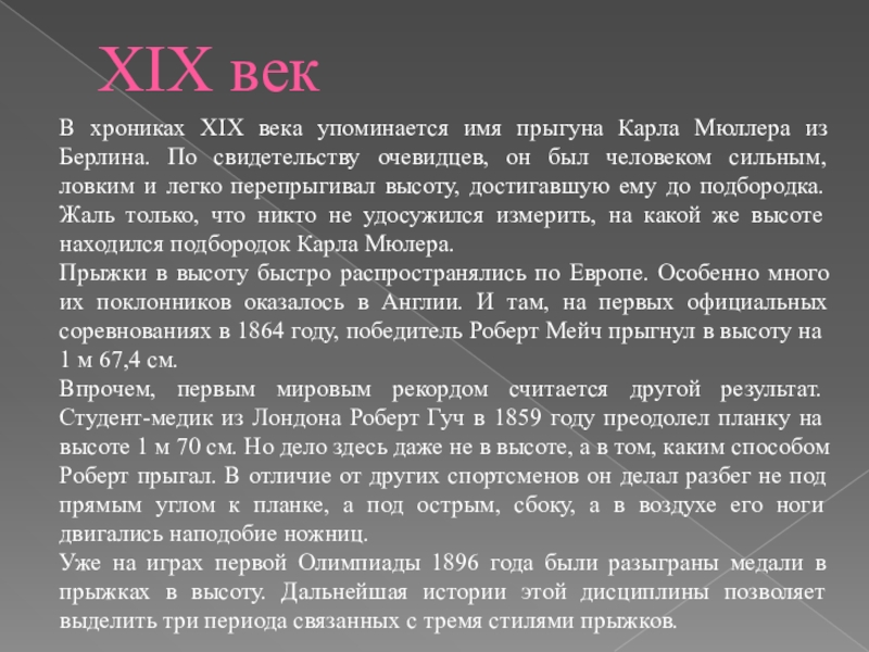 В хрониках XIX века упоминается имя прыгуна Карла Мюллера из