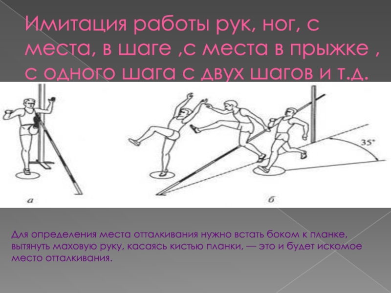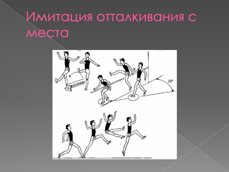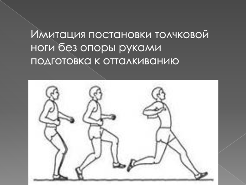 Слайд 14Имитация постановки толчковой ноги без опоры руками подготовка к отталкиванию