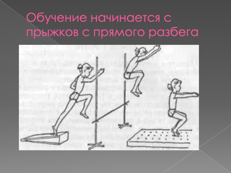 Слайд 9Обучение начинается с прыжков с прямого разбега