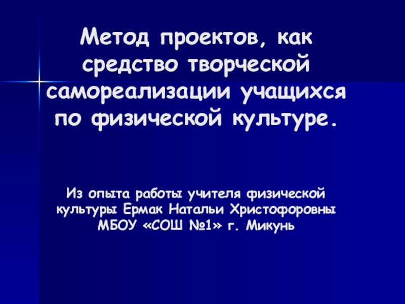Слайд 1Метод проектов, как средство творческой самореализации учащихся по физической культуре.