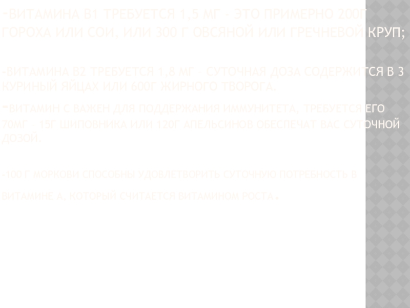 Слайд 14-Витамина В1 требуется 1,5 мг - это примерно 200г гороха или