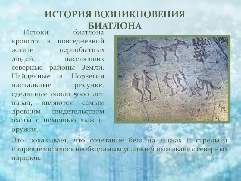 Это показывает, что сочетание бега на лыжах и стрельбы издревле являлось необходимым условием выживания северных народов.