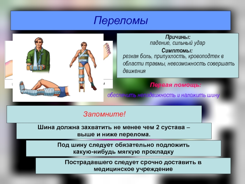 фиксация поврежденной конечности, неподвижность