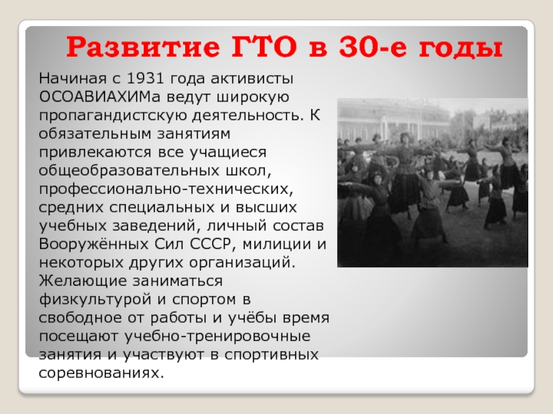 Слайд 11Развитие ГТО в 30-е годы
