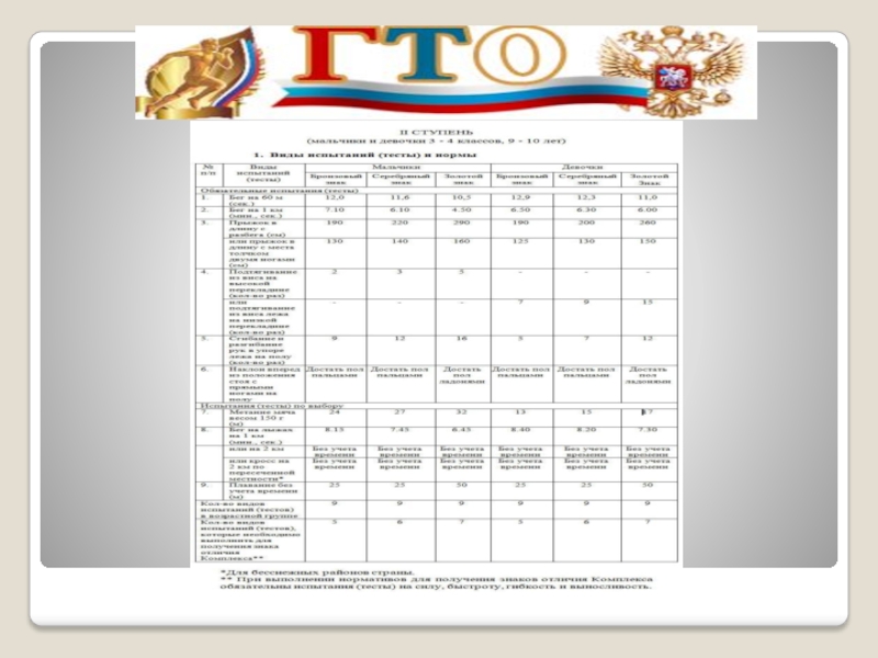 Содержание комплекса – нормативы ГТО и спортивных разрядов, система тестирования,