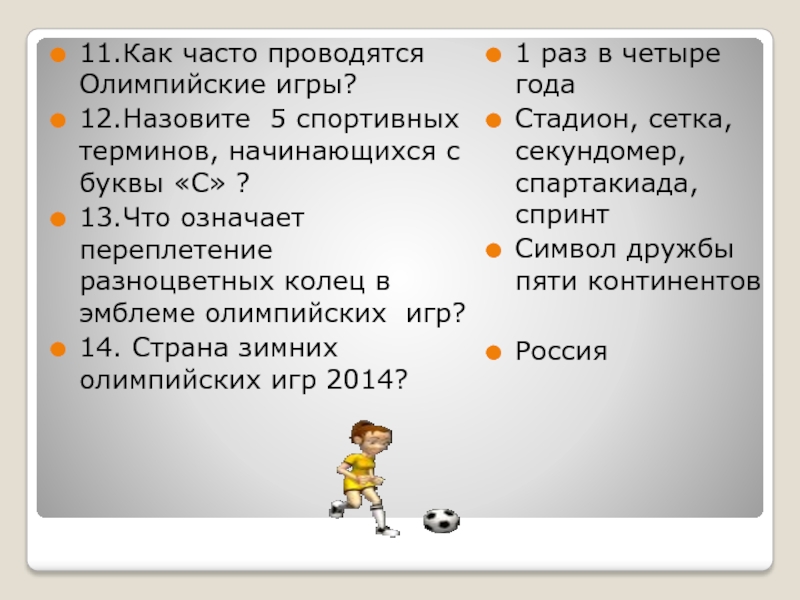 Слайд 1511.Как часто проводятся Олимпийские игры?