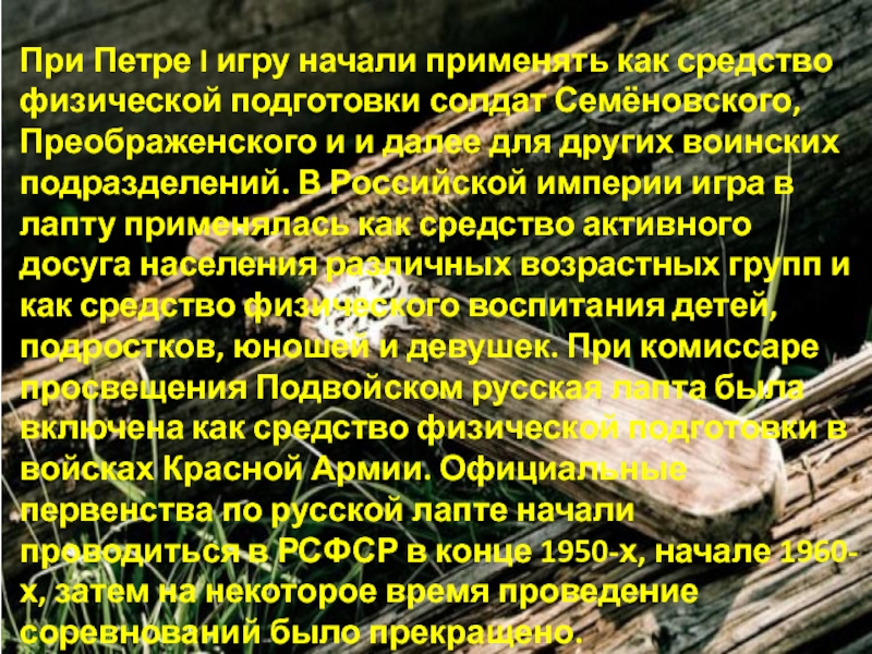 Слайд 4При Петре I игру начали применять как средство физической подготовки солдат