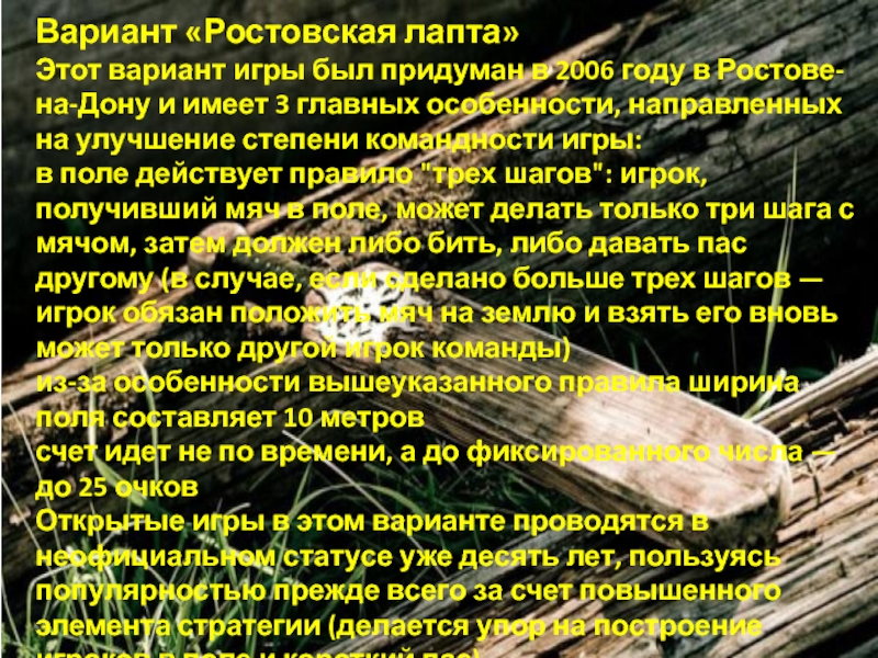 Вариант, модифицированный в Ярославле. Основные отличия от официальных правил