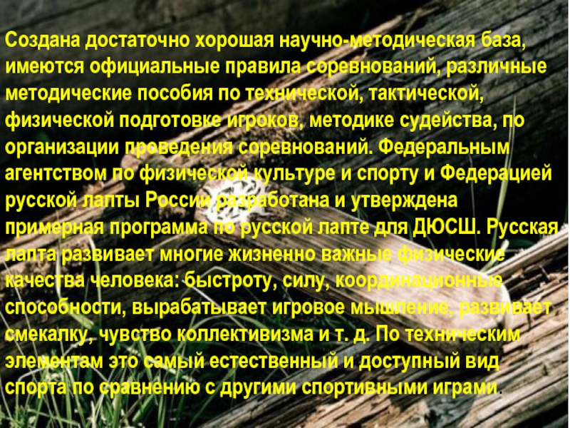 Слайд 7Создана достаточно хорошая научно-методическая база, имеются официальные правила соревнований, различные методические