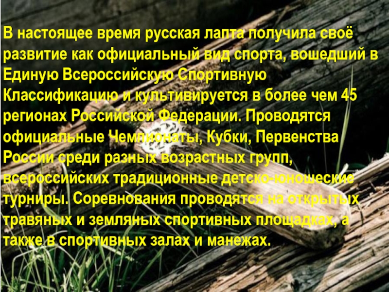 Слайд 6В настоящее время русская лапта получила своё развитие как официальный вид