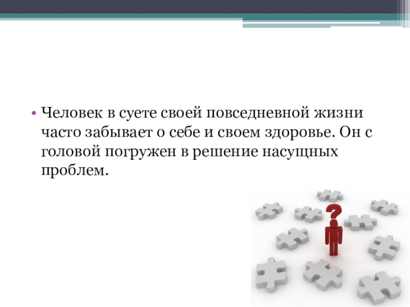 Слайд 5Человек в суете своей повседневной жизни часто забывает о себе и
