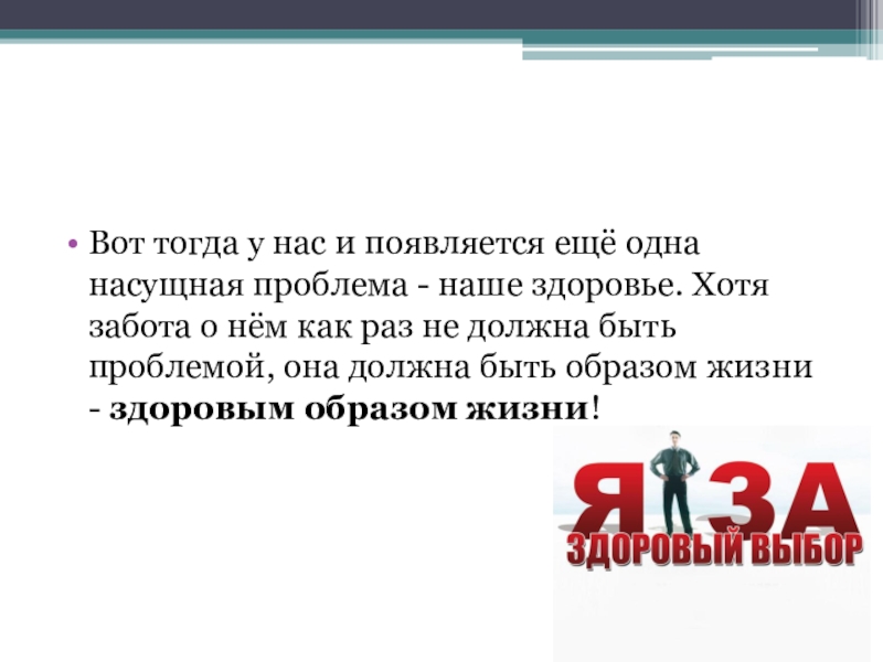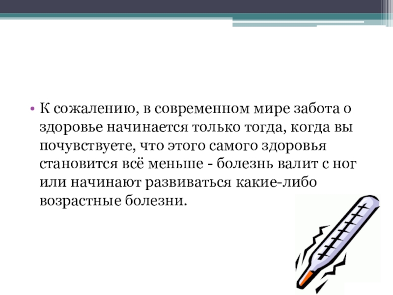 Слайд 7К сожалению, в современном мире забота о здоровье начинается только тогда,