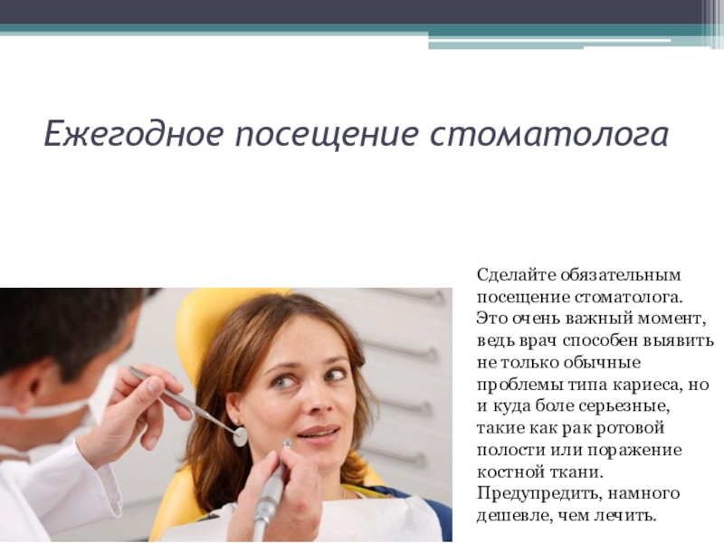 врач способен выявить не только обычные проблемы типа кариеса, но и куда боле серьезные, такие как рак ротовой полости или поражение костной ткани. Предупредить, намного дешевле, чем лечить.