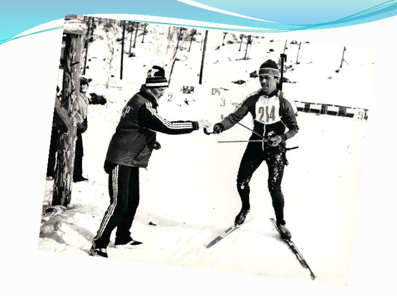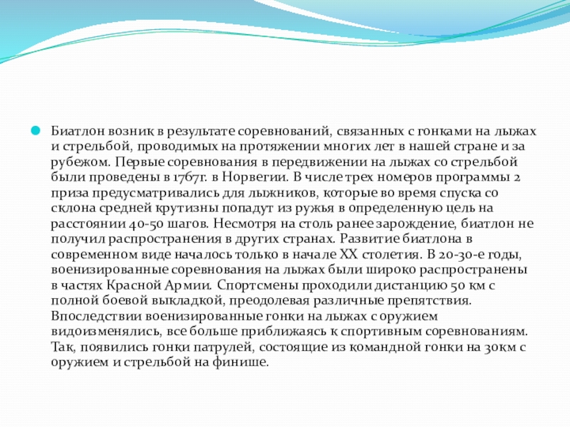 Слайд 13Биатлон возник в результате соревнований, связанных с гонками на лыжах и
