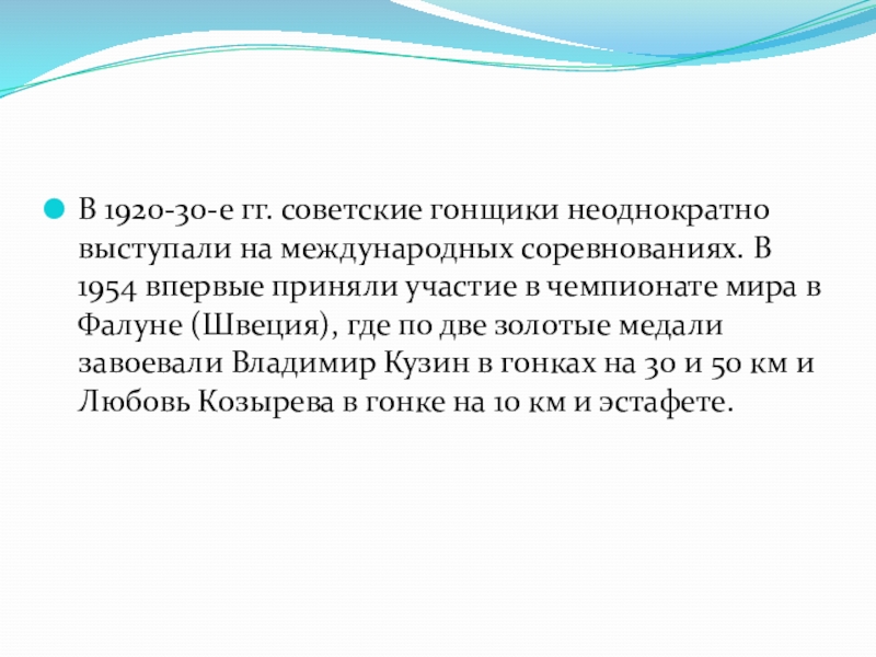 Слайд 7В 1920-30-е гг. советские гонщики неоднократно выступали на международных соревнованиях. В