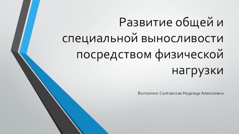 Развитие общей и специальной выносливости посредством физической нагрузкиВыполнил: Салтовская Надежда Алексеевна