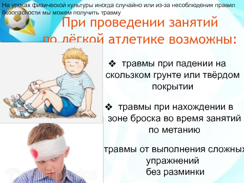 На уроках физической культуры иногда случайно или из-за несоблюдения правил безопасности мы можем получить травму