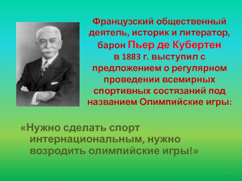 «Нужно сделать спорт интернациональным, нужно возродить олимпийские игры!»