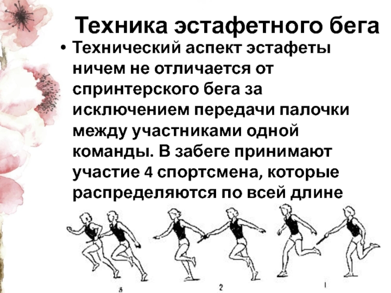 Технический аспект эстафеты ничем не отличается от спринтерского бега