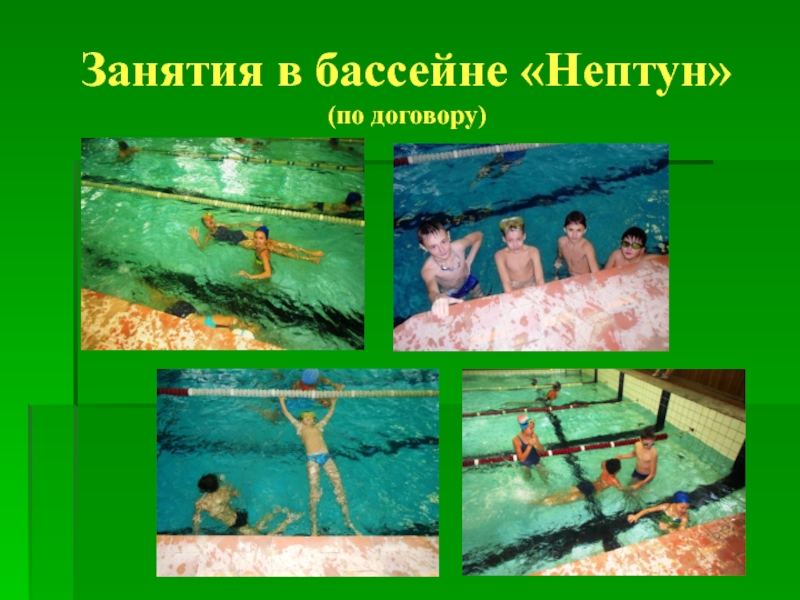 Слайд 33Занятия в бассейне «Нептун»