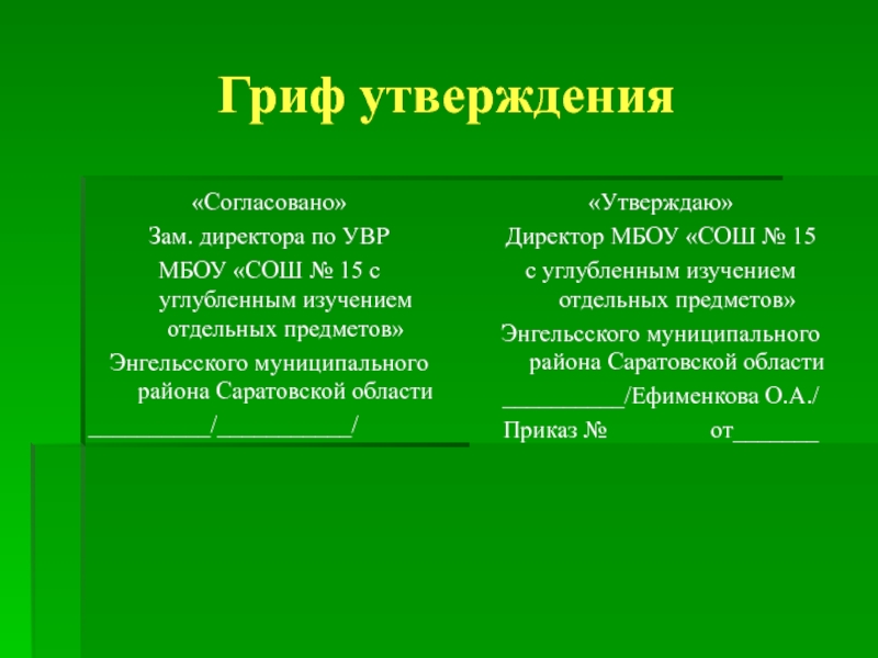 Слайд 10Гриф утверждения