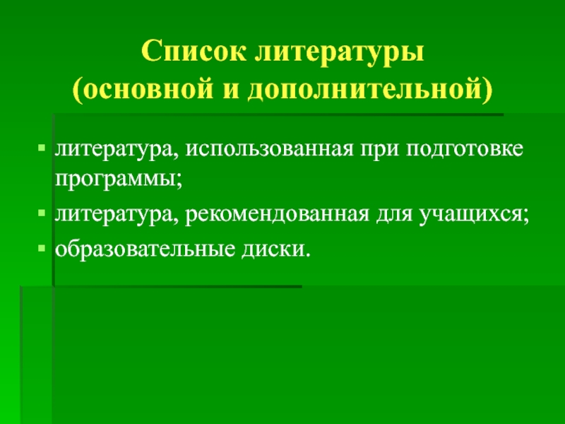 литература, использованная при подготовке программы;