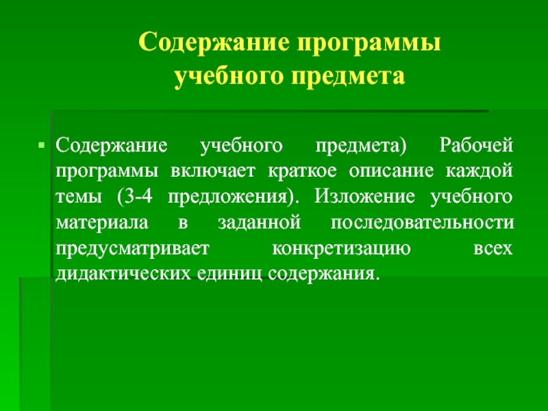 Содержание учебного предмета) Рабочей программы включает краткое описание