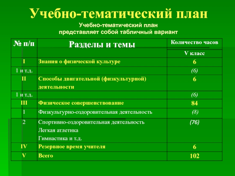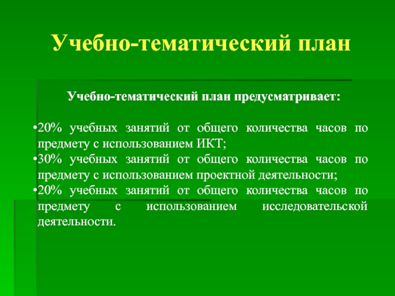 основное содержание тематического плана;