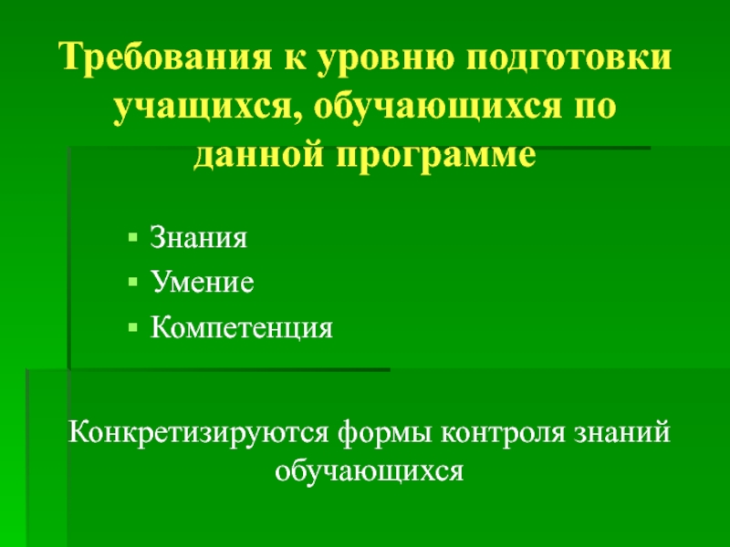 Слайд 16Требования к уровню подготовки учащихся, обучающихся по данной программе