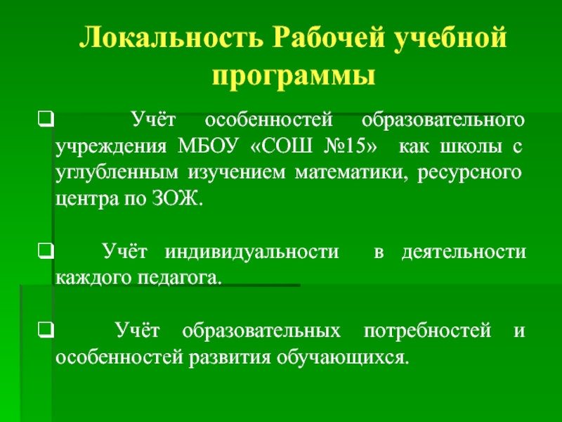 Слайд 7Локальность Рабочей учебной программы