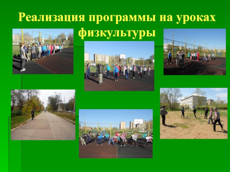 Слайд 27Реализация программы на уроках физкультуры