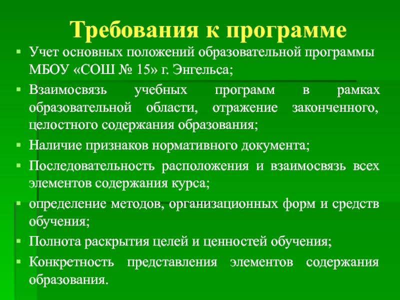 Учет основных положений образовательной программы МБОУ «СОШ