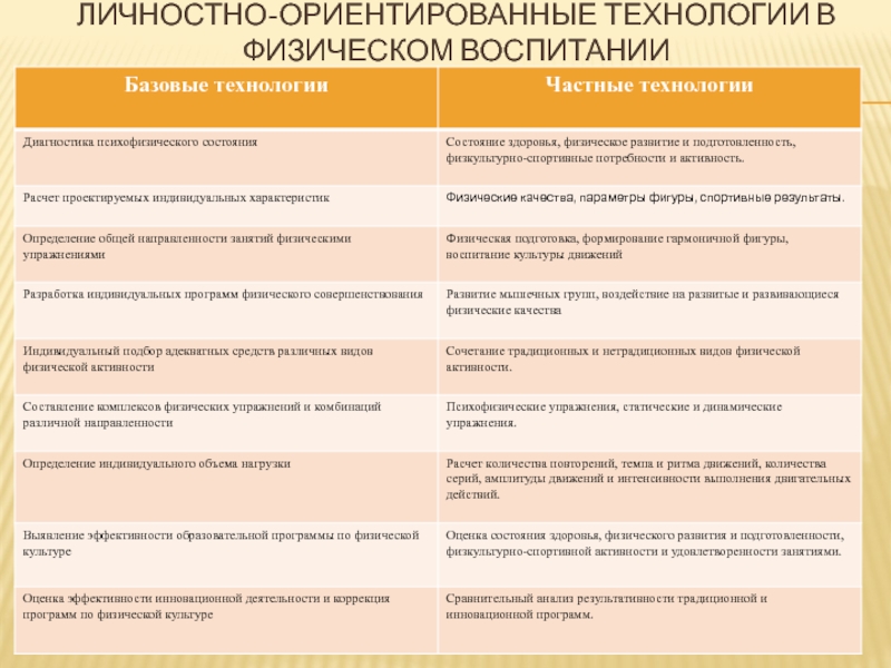 Слайд 6Личностно-ориентированные технологии в физическом воспитании