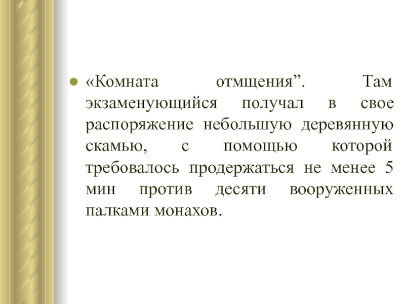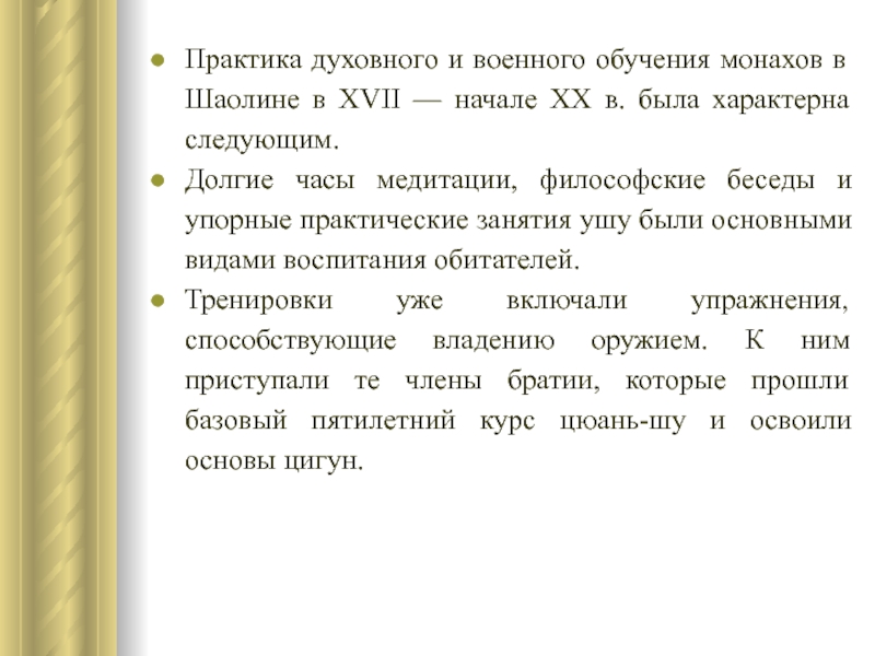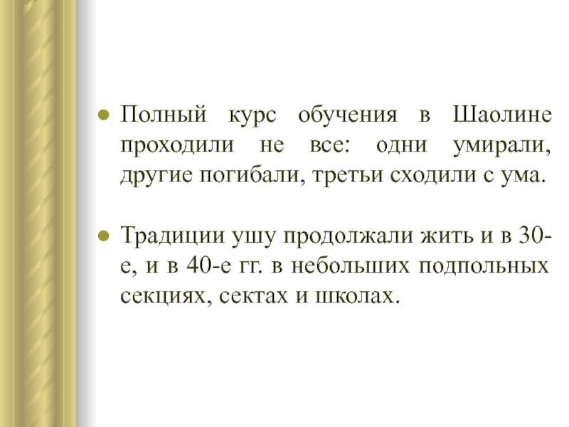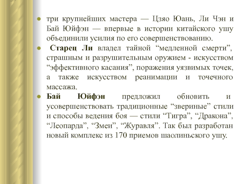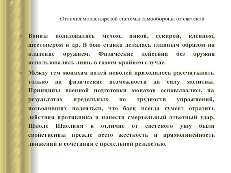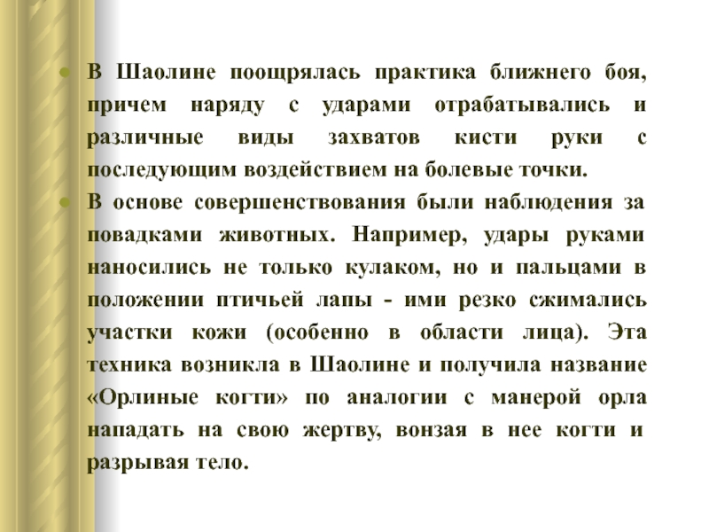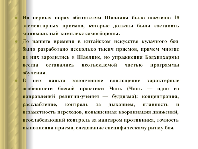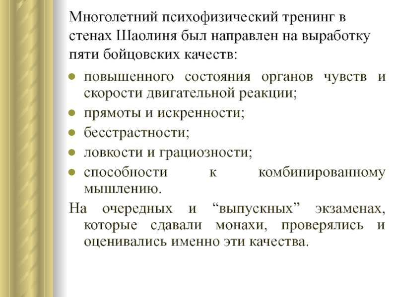 Слайд 36Многолетний психофизический тренинг в стенах Шаолиня был направлен на выработку пяти