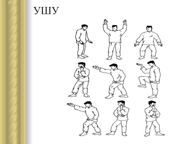 Слайд 21Сейчас в ушу насчитывается несколько сотен не похожих друг на друга