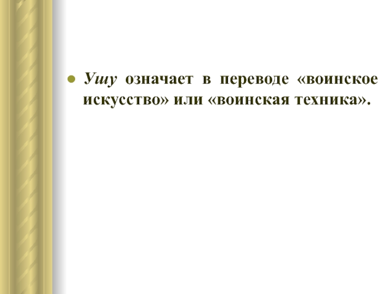 Ушу означает в переводе «воинское искусство» или «воинская техника».