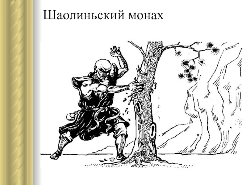 Слайд 29В Шаолине поощрялась практика ближнего боя, причем наряду с ударами отрабатывались