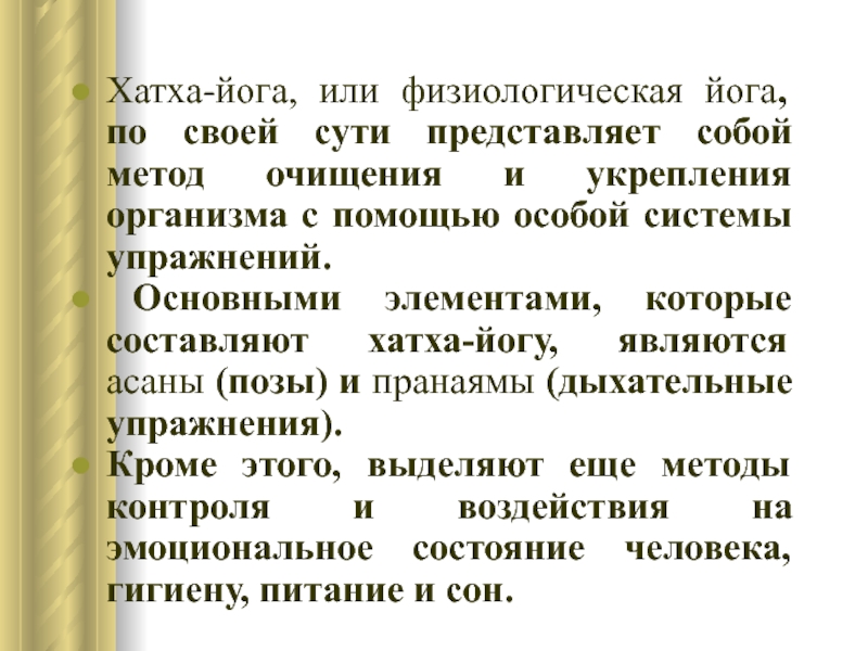 Хатха-йога, или физиологическая йога, по своей сути представляет собой метод очищения